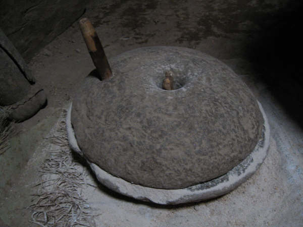 Nous sommes monté tout en haut du marabout. La vue y était magnifique... Et là Mohamed, notre guide bien-aimé, nous a tout expliqué : autrefois un sage vivait dans le marabout et les habitants venaient le voir pour se soigner. L'endroit servait également à la fois de place forte et de grenier. Un vieil homme y habite toujours et nous a invité à boire le thé et visiter l'intérieur. Qui se lève à 4h du mat' pour faire son pain avec la meule